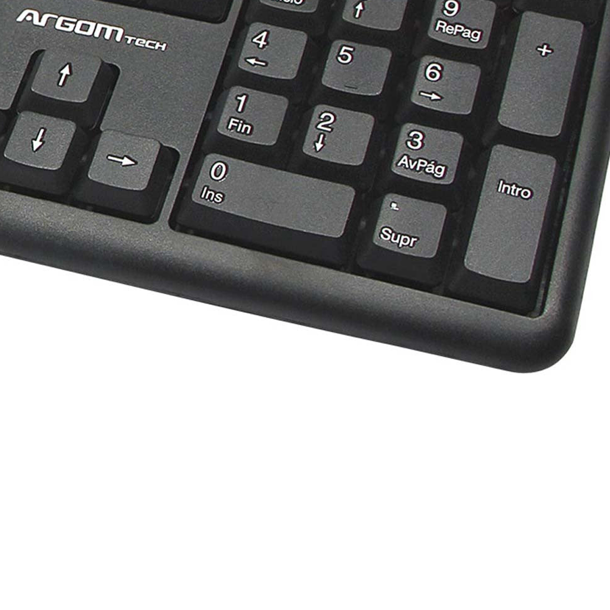 Disponés de un puerto USB, es resistente a derrames, no te preocupés por accidentes con agua. El teclado es en español, funciona muy bien tanto para oficinas, como para uso en casa, las teclas son suaves pero muy resistentes.