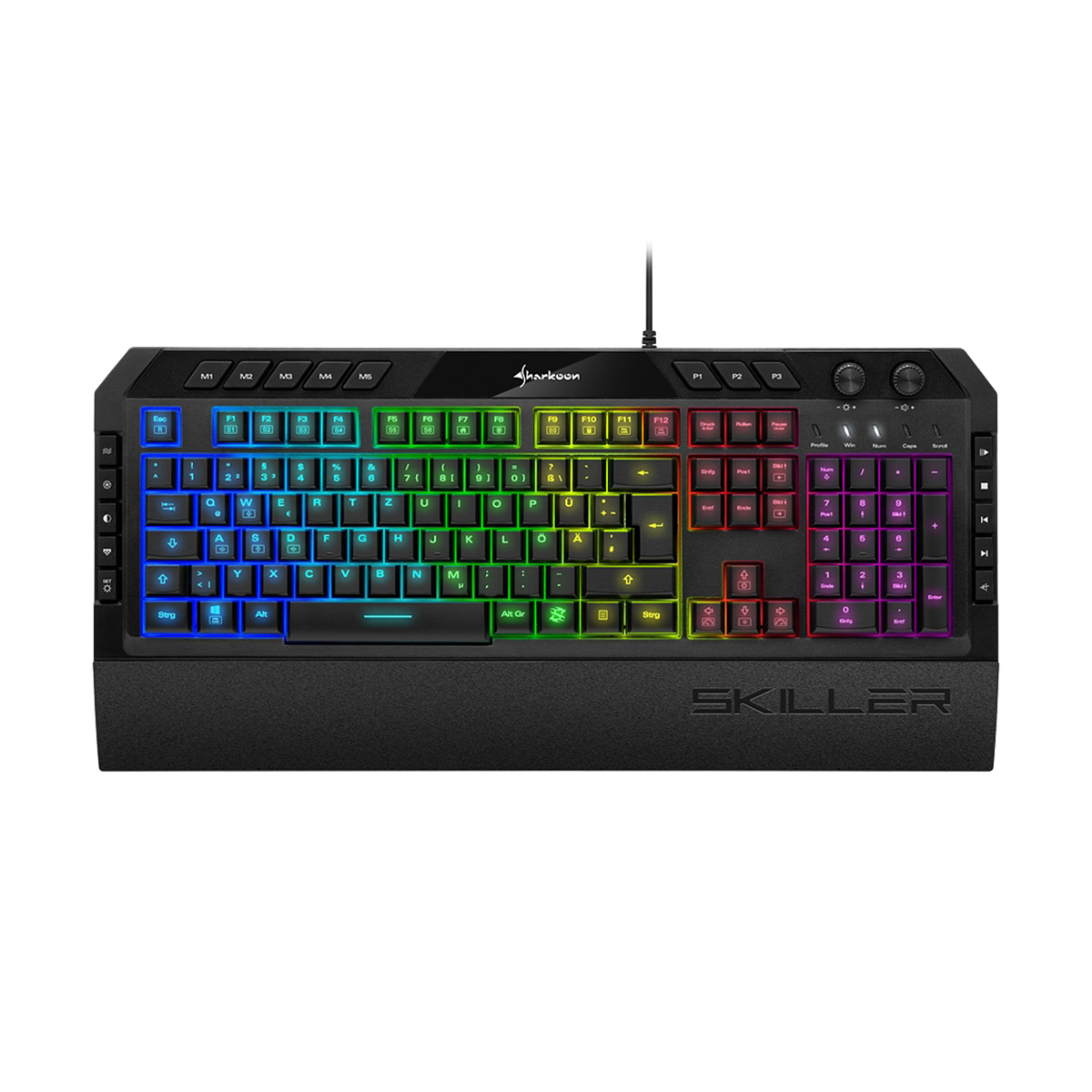 La iluminación de fondo del Skiller SGK5 se puede colocar en seis zonas y 16,8 millones de colores. Varios efectos están disponibles sin necesidad de usar el software gaming descargable.