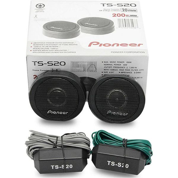 Este Tweeter Pioneer TS-S20 200W 20mm es un componente de alta frecuencia que se utiliza para mejorar la calidad del sonido en sistemas de audio de vehículos. Tiene un tamaño de 20 mm y una potencia máxima de 200 vatios. Posee un campo magnético que aumenta la potencia de salida y optimiza la disipación de calor.